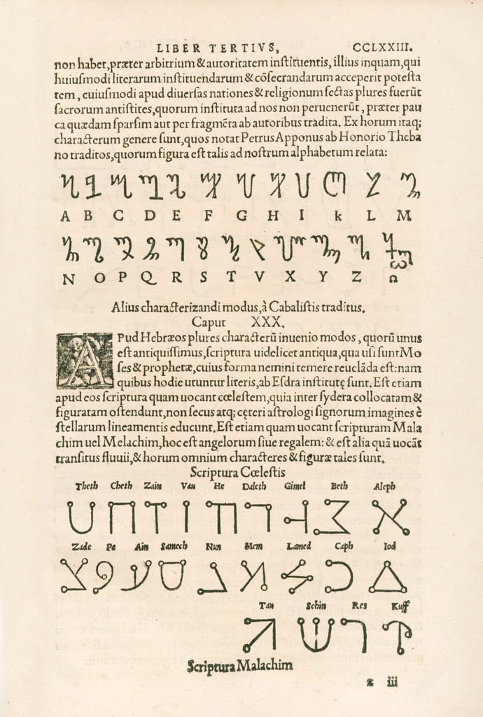 Theban Alphabet Honorian Alphabet Or The Runes Of Honorius And Celestial Alphabet Scriptura Malachim Or Angelic Script Engraving From Heinrich Cornelius Agrippa Von Nettesheim 1486 1535 De Occul
